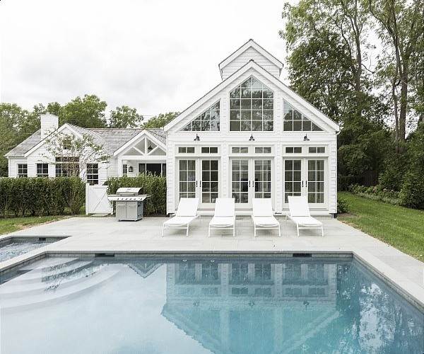 This contemporary farmhouse is a short walk from Georgica Beach. With thirty-five 5-star ratings, guests love the gourmet kitchen, private pool and 15-foot movie screen in the house’s home theater.