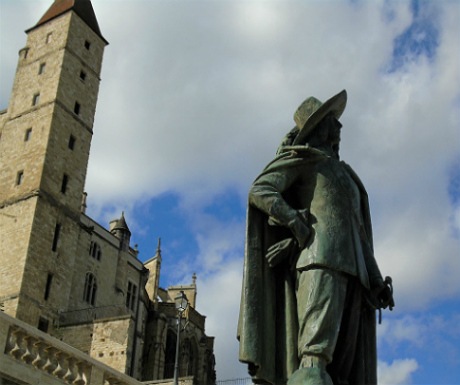 D’Artagnan, of Three Musketeers fame, born nearby, is Auch’s local boy made good, and his statue stands behind the cathedral. The cathedral is at the heart of Auch’s lively arts programme and you may be able to catch a concert.