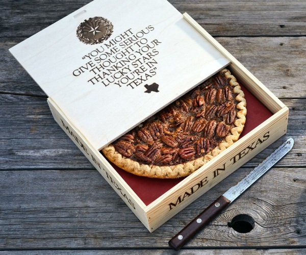 Ah yes, the pecan pie. But this is no ordinary pie. It is a TEXAS pecan pie, which means it is bigger and gooier and richer than any other “real deal” out there, chock-full of fresh Texas pecans harvested from the banks of the Brazos River then nestled into luscious layers of homemade Goode-ness.