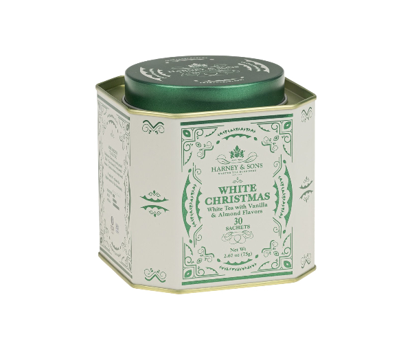 Recline in front of a glowing fire while the snow drifts and the tree lights twinkle. A sip from this warm and nutty blend from Harney & Sons completes the perfect winter wonderland. Ingredients include white tea, cardamom, chamomile, almond flavor, vanilla flavor and cardamom flavor. Contains natural flavors.