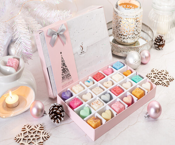 Little Miss Twiggie Twinkles‘ luxury Christmas selection box contains the perfect variety of festive scents all in one box. 48 highly scented soy wax melts in 24 magical Christmas fragrances. An ideal gift to any wax melt lover or little treat to yourself.