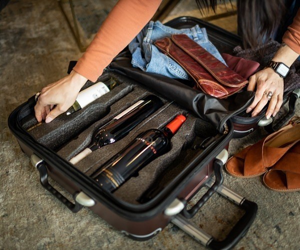 The VinGardeValise takes the worry out of traveling with wine. Created by FlyWithWine, the VinGardeValise Piccolo is a tough suitcase made with dense foam inserts to cradle five wine bottles with room for your clothes and belongings on the other side.