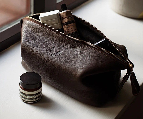Bennett Winch‘s brown leather wash bag is the perfect balance of form and function. Featuring a clip out wet compartment for storing beard clippers or razors, this made in England wash bag also carries a zip secured internal pocket. With a wide opening for easy access and a luxury RiRi zip securing all of your toiletries, the Bennett Winch wash bag is the ultimate ally for carrying your essentials, coming fully lined in Italian nylon and crafted from the finest full grain Tuscan leather, making it one of the best dopp kits for travelling in style.