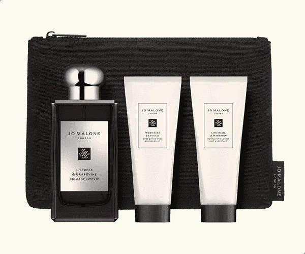 A refined selection of scents in travel-friendly sizes, courtesy of Jo Malone. Cleanse skin with the freshness of Wood Sage & Sea Salt Body & Hand Wash (75ml), followed by zesty Lime Basil & Mandarin Body & Hand Lotion (75ml), then finish with the aromatic woody scent of Cypress & Grapevine Cologne Intense (100ml).