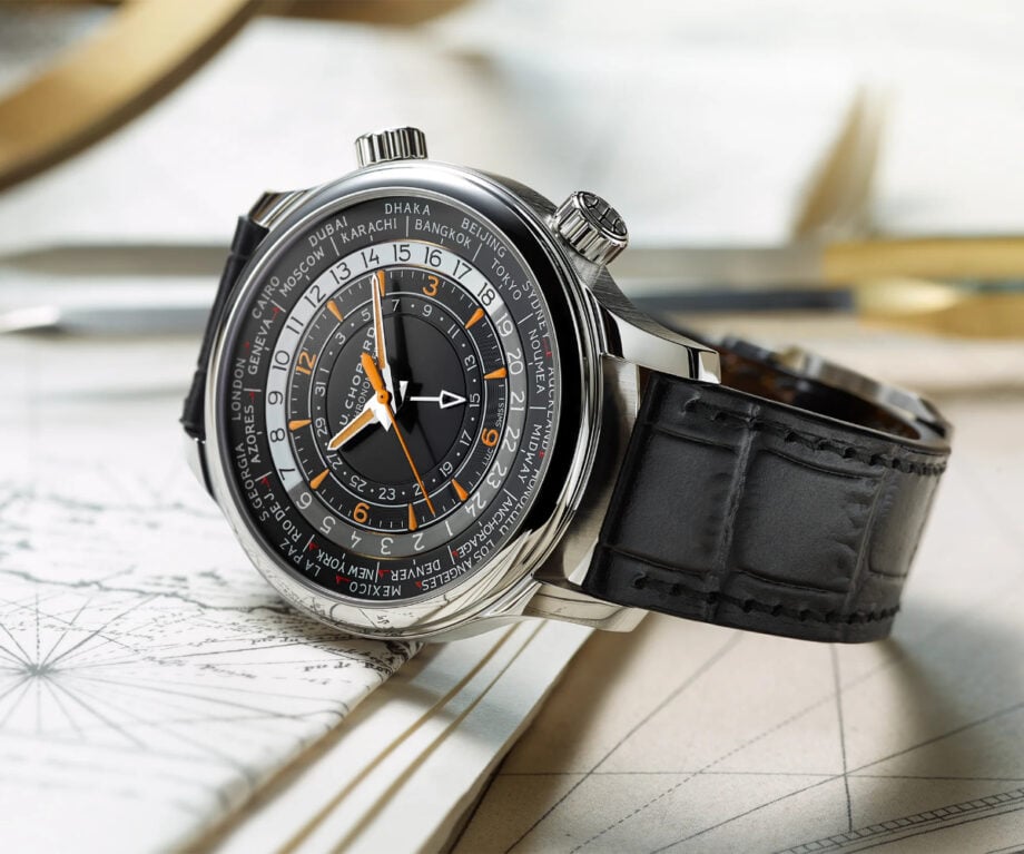 Impeccable elegance, flawless quality, and state-of-the art technical sophistication make L.U.C watches the perfect timepiece for the modern gentleman who appreciates the finer things in life. Ideal for international travellers, Chopard‘s L.U.C Time Traveler One in Lucent Steel™ boasts a complication that displays all the timezones simultaneously.