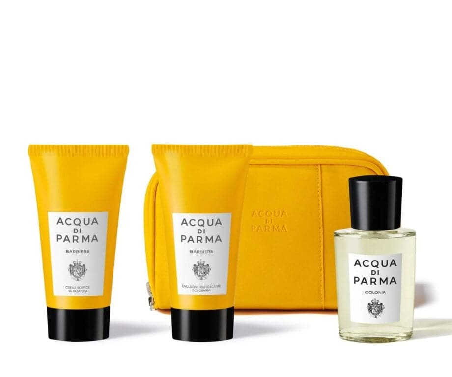 This essential shaving kit is a travel-friendly ritual for the perfect shave. The iconic yellow Acqua di Parma branded pouch contains the Shaving Cream and the Aftershave Emulsion in 40ml travel size. Moreover, the Iconic Colonia is present in the offer in the 20ml format.