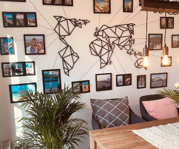 Our planet is not only made up of continents, mountains or seas but it also has your memories. So, here is a great opportunity to see and show them on your wall! Hang your travel photos around the world map and inspire your guests with this unique decor from Hoagard.