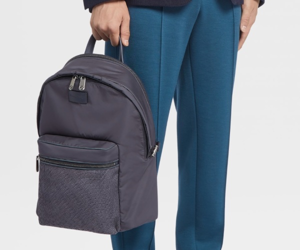 The dark blue Zegna hoodie backpack with PELLETESSUTA™ details is the perfect modern, soft nylon bag for moving around the city in style. It is characterized by its PELLETESSUTA™ front pocket, adding an iconic and elevated texture contrast. This backpack features a special mesh lumbar pad with the stitched Z vintage logo for a signature finishing touch.