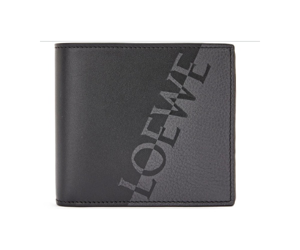 A bifold wallet in smooth calfskin and soft grained calfskin with a two tone LOEWE logo on the front crafted in leather marquetry. Pictured here in Anthracite/Black but available in other colors.