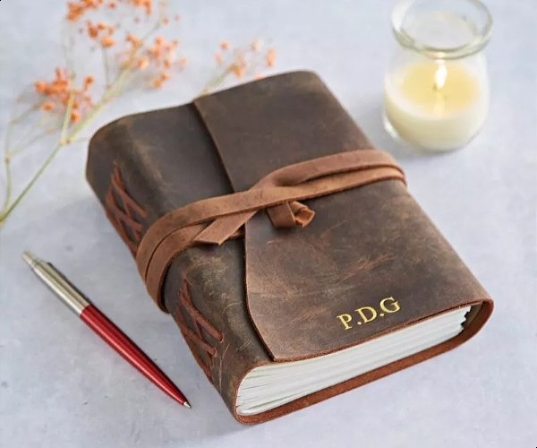 Personalised Buffalo Leather Wraparound Journal from Paper High