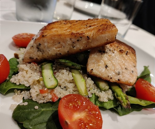 We celebrated our success with dinner at Little Bay restaurant, which rather confusingly bills itself as an Indian tapas bar. We saw no evidence of Indian tapas, but it is an excellent Indian restaurant nevertheless, with quality dishes such as the pan seared salmon pictured below. This delicious fillet of salmon was delicately spiced, served atop fragrant quinoa, and garnished with fresh cherry tomatoes and asparagus.