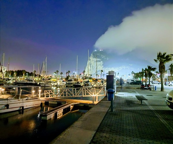 After a couple of nights in Gibraltar, we had a change of scene by staying at Alcaidesa Marina, on the Spanish side of Gibraltar’s border, next to La Línea de la Concepción. In this picture taken at the marina, you can see the cloud over Gibraltar, which was pretty much evident all week and signifies the area’s typical levante wind system which is caused by high pressure in the Mediterranean and low pressure in the Atlantic, resulting in a funneling effect that creates strong gusts.