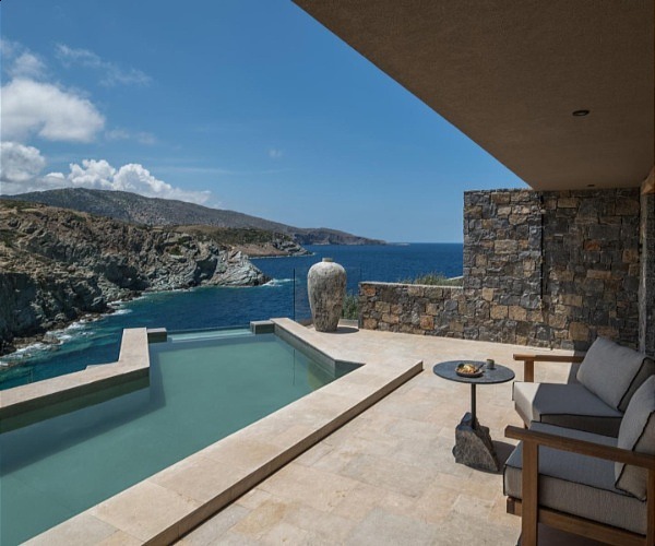 The property consists of 49 bespoke suites and villas, all designed to create a memorable experience that is the apotheosis of relaxation. From suites nestled into the cliffside, furnished with natural and bohemian elements, to contemporary villas with private infinity pools, and breathtaking views of the Aegean, ACRO Suites is the perfect hideaway to reconnect to oneself.