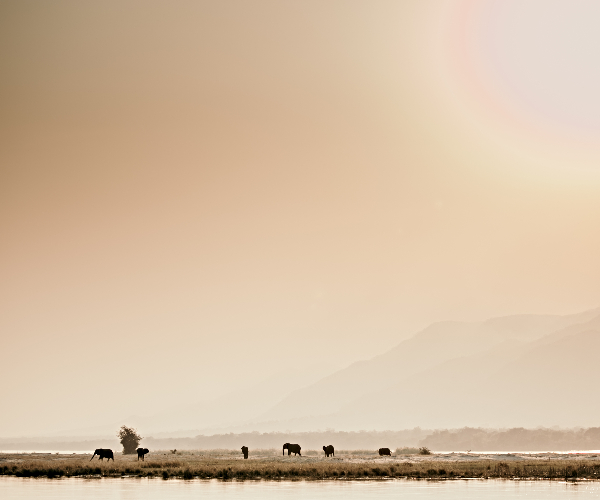 The intoxicating smell of wild jasmine fills the air, there’s a slight chill and mist rises from the river, as the sun peeps over the horizon the sky turns from pale grey, to shades of lilac and pink. We are heading downstream, towards the boundary of Zambia’s Lower Zambezi National Park.
