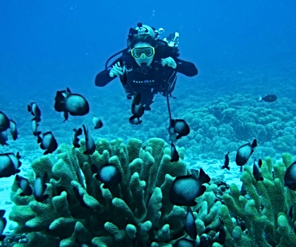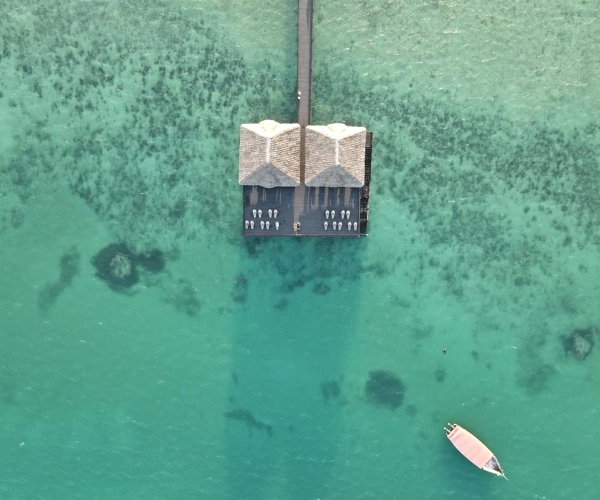 The hotel has a long pier stretching out over the water, currently there’s a bar and activity centre here, but some innovative villas are currently under construction, and they will be somewhere pretty unique to stay. We borrowed masks and snorkels from the activity centre and clambered down the steps and directly into the water. The tide was changing and the current was strong but, swimming a few hundred metres from the pier, we found ourselves amongst colourful clumps of coral. Thousands of purple shiny sea urchins bristled on the ocean floor, and we made sure to keep well away from their dangerous looking spines.