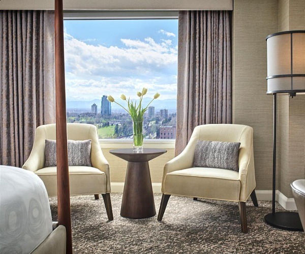 Welcomed with a sit-down check-in, Hotel Clio’s Oshibori-style arrival experience is a marvel for the senses – complete with a custom cocktail, hot and cold scented towels infused with the hotel’s signature aroma of White Blossom Tea, and a curated welcome playlist. The high-touch welcome experience is enhanced by thoughtful design details – beautiful marble floors and custom art pieces – all anchored by a grand stone fireplace. The design seamlessly blends influences of the region’s natural elements with touches authentic to the destination, creating a dramatic, yet serene atmosphere. The idea of “confluence,” a term that describes the junction of two rivers, is expressed in the spatial design details – such as flooring evoking the flow of the river, cerused oak, and brass accents highlighted with custom table lamps designed to emulate the look of a gold miner’s lamp.