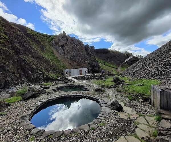 Entry to the Húsafell Canyon Baths cannot be made without permission, but you can buy tickets from Hotel Húsafell at an office next door to the bistro for an exclusive minibus tour that includes transport with a tour guide, access and time to spend there.