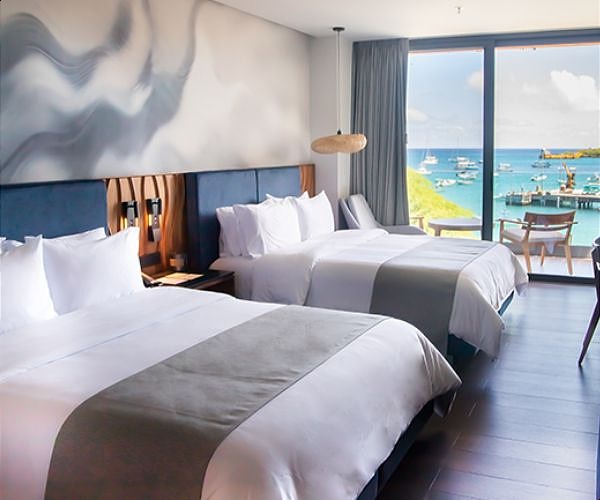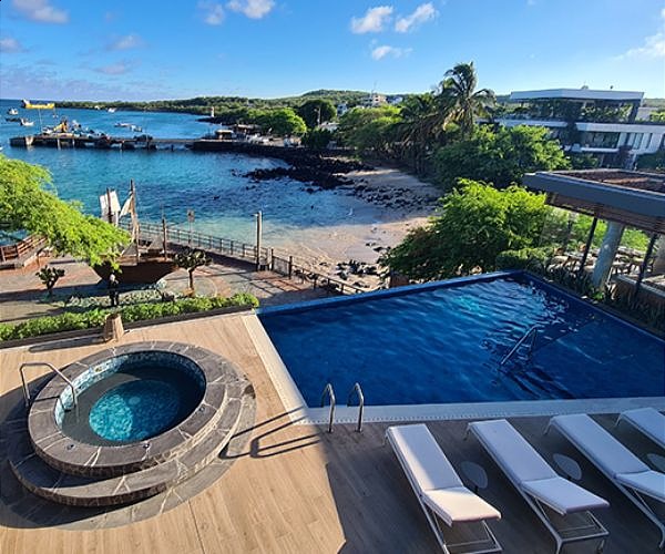 Modern, intimate guestrooms encourage rest and relaxation while celebrating the adventurous spirit of the Galapagos. Each is an ocean-view open space with a private balcony and features a lounging area with a minibar and state of the art amenities. Guests can enjoy their choice of King or Queen bedded rooms or one of its three suites, complete with sumptuous bedding, spa-inspired bathrooms, and state-of-the-art amenities. Public areas include a spa, gym, wellness patio, pool and jacuzzi, business center, gift shop and event spaces.