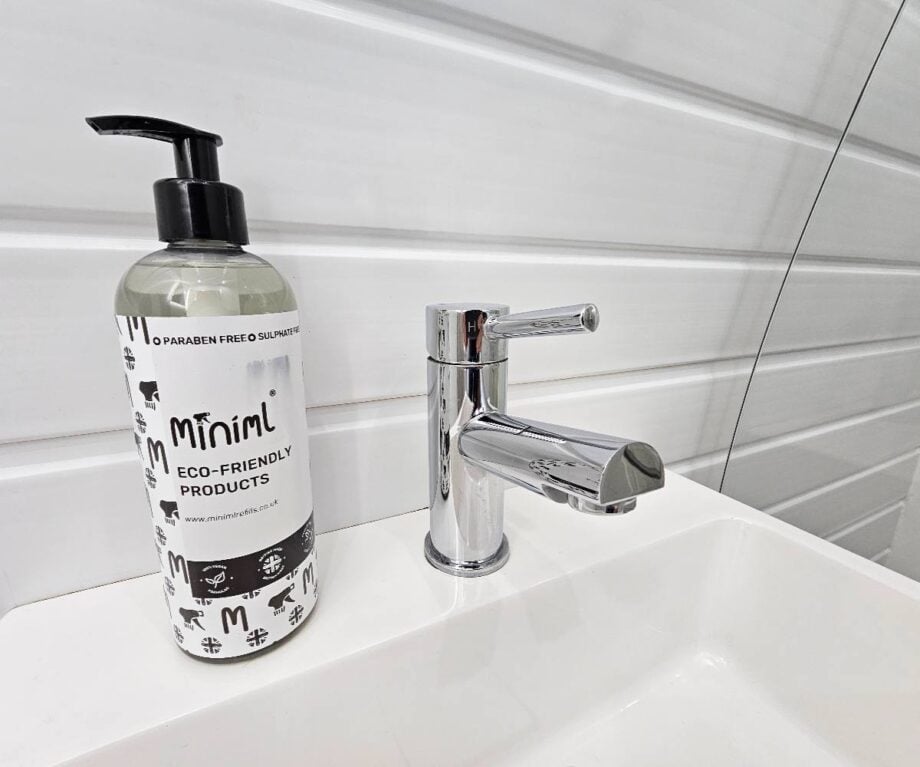 The en suite is a crisp, modern affair, featuring a powerful shower, a basin with a heated mirror, and a WC. In a nod to the farm’s sustainable ethos (over 300 trees and 500m of traditional hedging have been planted at the site), toiletries are from the Yorkshire-based refillable Miniml brand, designed to eliminate single-use plastics.