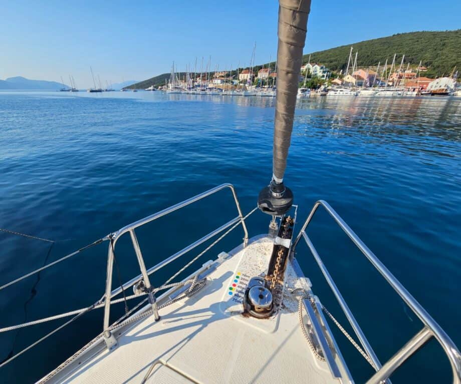 Sail Ionian doesn’t dilly-dally. After a welcome briefing and yacht handover by Chris, we were off the dock and motoring through the Vliho strait by late afternoon. The sea was gentle, our spirits high, and we were looking forward to the adventure that lay ahead.