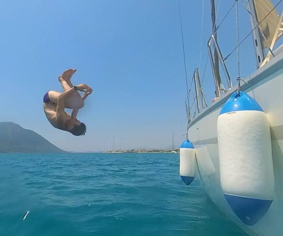 In Greece, at least one person on board needs an ICC (International Certificate of Competence) or an RYA Day Skipper qualification. A second adult must be at least at the level of ‘Competent Crew’ — essentially someone who knows their port from their starboard and won’t tie themselves to the boom during a gybe.