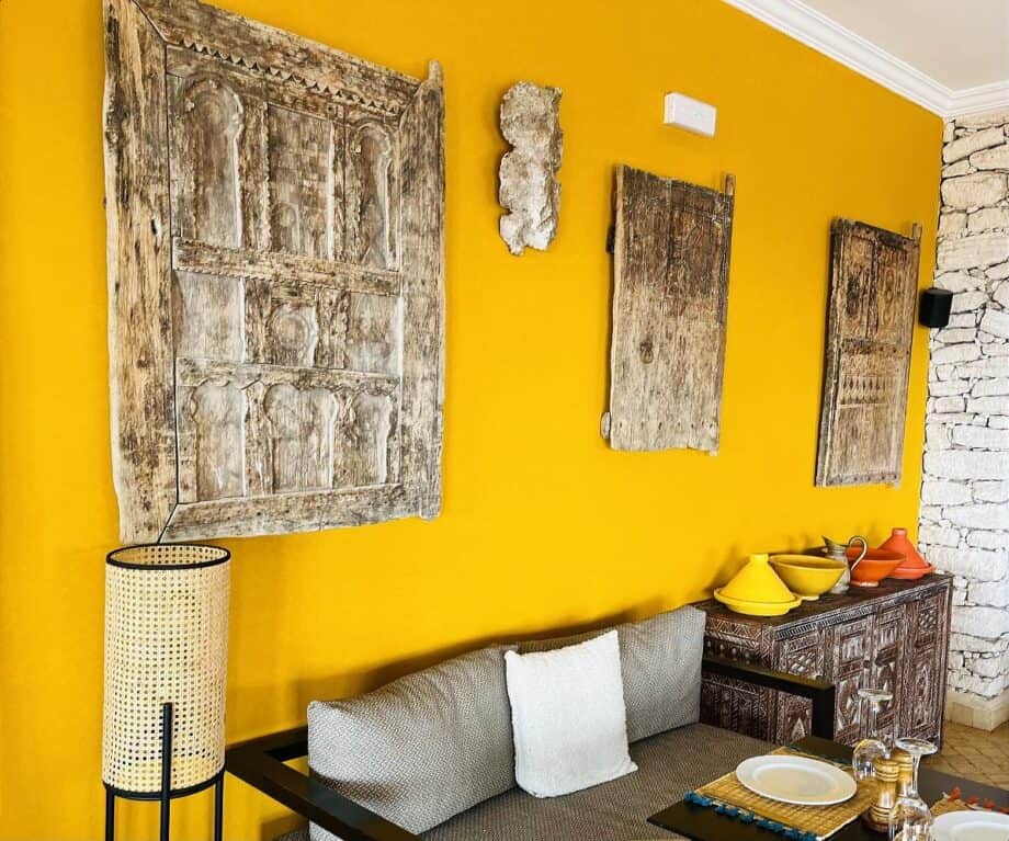 Created from local sandstone, cooling in summer, warming in winter, Kasbah d’Eau, is a boutique hotel of just 17 rooms and suites, with art house design. A calm double-height central atrium pulls in the light, illuminating vivid contemporary abstract art that contrasts with solidly traditional dark furniture.