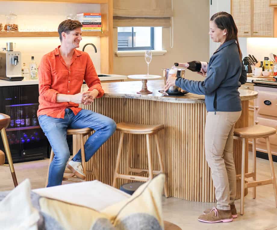 From the parking area, our bags were carried into the house, and in the kitchen, a welcome hamper filled with tempting snacks was waiting for us – along with a bottle of sparkling wine from local winery L’Ormarins. With a glass of bubbly poured, we were invited on a brief tour to familiarise ourselves with what would be our home for the next few days.