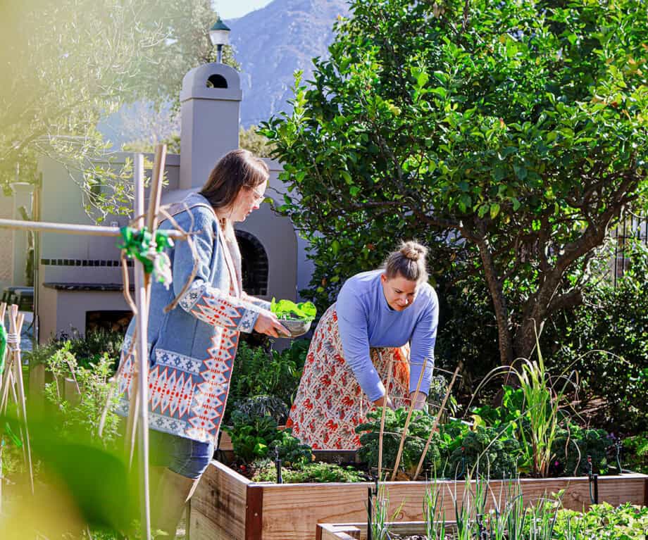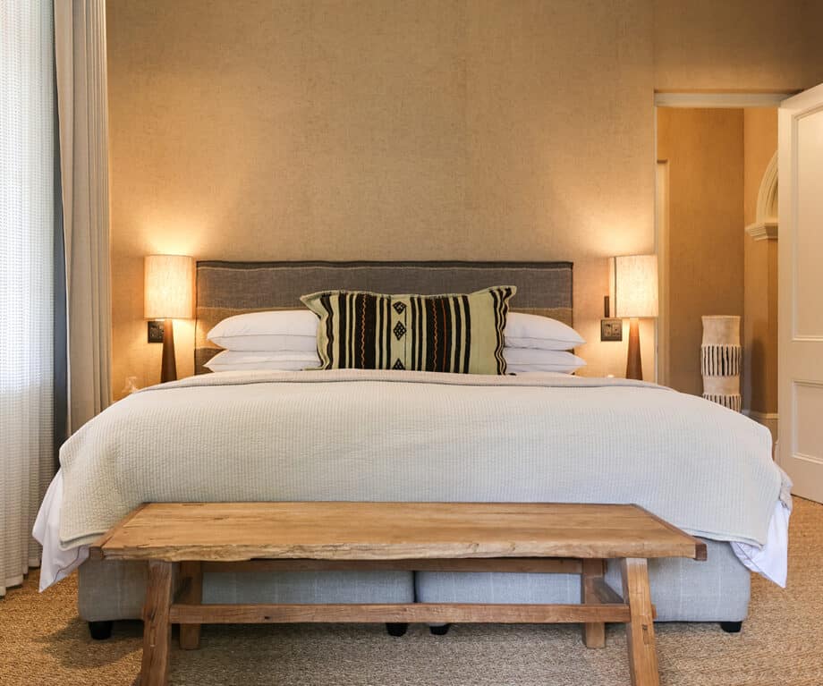 Surrounding the house is a beautifully landscaped garden designed by Francesca Watson, with various spaces for natural connection. The lush vegetable and fruit beds are both an aesthetic treat and a source of fresh produce, which guests are welcome to pick and graze from. The garden botanicals made a splendid addition to our evening G&Ts – enjoyed beneath the shade of large olive trees. There’s even a courtyard off the lounge with a tranquil koi pond – perfect for early summer mornings or soaking up the late afternoon winter sun.