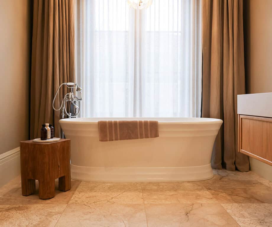 The bedrooms have en suite bathrooms, equipped with well-loved, proudly local brand Africology’s amenities. The highlight was the principal suite’s bathtub – the oversized Victoria and Albert tub sat prominently in the spacious room, adjacent to double sash windows. With accompanying bath salts and soak, it felt like a regal experience, reclining in the tub after an afternoon or evening of exploring. Even the fluted marble detail in the guest bathroom exceeded expectations.