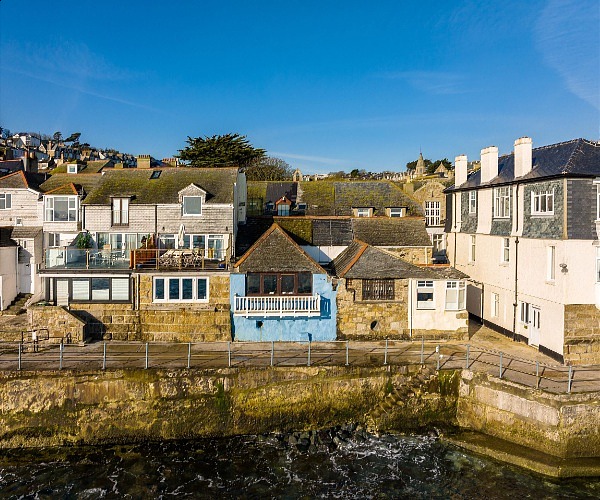 With its listed balcony hanging out over the sea wall walk, this blue-washed waterfront retreat is almost on the beach. Pole position for exploring St Ives’ charms from dawn to dusk and beyond.