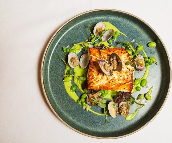 Every day, a substantial cut of meat, perhaps a 16-ounce T-bone steak, and the fish catch of the day, headline the menu. Immediately beneath, roast onion cleverly filled with the local black bomber cheese redresses the balance for vegetarians, whilst spring vegetable and lovage orzotto provides a vegan option.