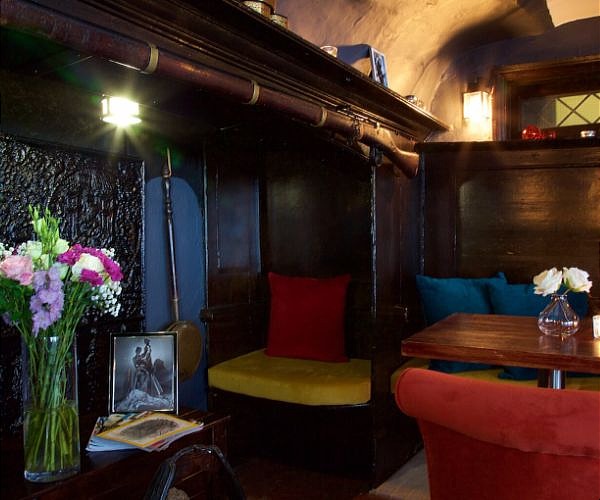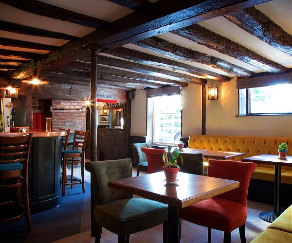 Heading indoors, the low-timbered bar with pints of Hogs Back beer on tap, is quintessential Merrie Olde England.