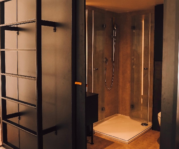 These slick contemporary bathroom facilities are very different to those traditionally associated with outdoor living. Even the bathroom cabinet is large enough to store away everyone’s necessities.