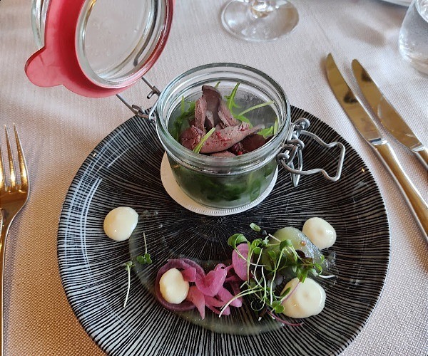 And when in Iceland, why not try puffin? At Rangá, they serve smoked puffin (lundi) in a small glass pot, with apple mousse, crowberry powder and garlic mayonnaise
