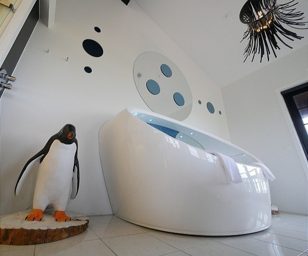 And if all that wasn’t enough, two life-sized Adélie penguins guard either side of a large two-person Jacuzzi bath.