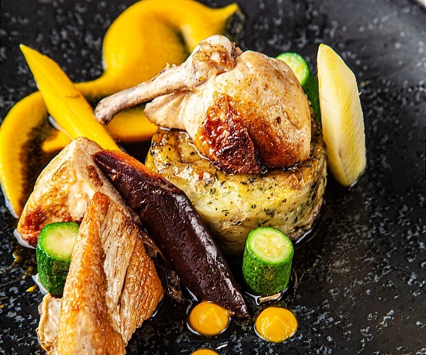 For starters, alongside a rabbit terrine, scallops, and duck leg confit, there is a willingness to push boundaries with scorched pumpkin and truffle emulsion given an appropriate crunch with pumpkin seeds.