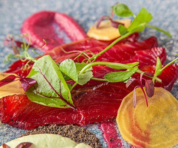 Keeping sourcing fresh and local wherever possible, a trio of leeks is served with halibut, blackberries with the duck breast and parsnips with the pan seared chicken supreme.