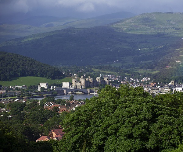 Number 18 has a wall devoted to mullioned windows framing a spectacular view across the formal gardens, beyond ripples of green valleys and onto the imposing battlements of Conwy Castle.