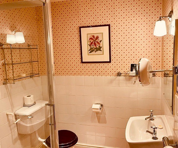 From the Narnia depths of the wardrobe through to a seven feet wide double bed, everything is on a generously aristocratic scale. Warm pools of light from table-lamps provide a gentle glow. A floral bedspread, sheets and blankets are from a bygone era. No wall-mounted televisions here. A modest television is partially hidden away in a quiet corner. Only recently have tea trays been introduced as a nod to the 21st century.