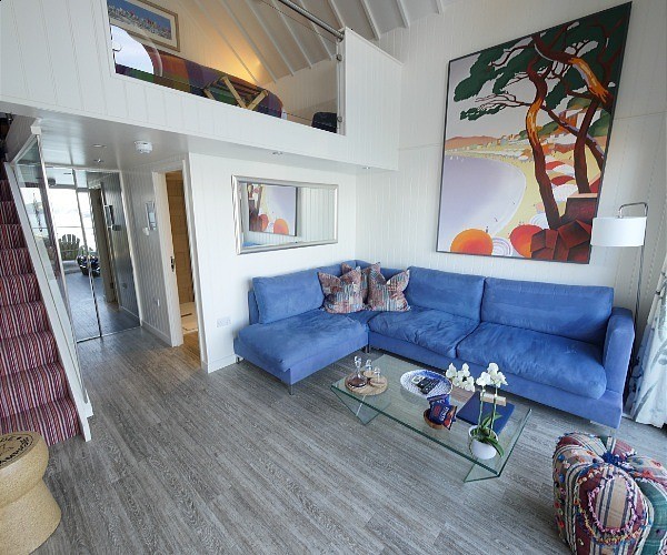Back on the ground floor, a large bi-fold glass door lets in lots of natural light and a large sofa and colourful art add to the bright and airy atmosphere of this contemporary hut. There’s a Netflix-enabled smart TV, DVD player and Sonos music system, Smeg mini fridge, Nespresso machine, electric kettle and free WiFi.
