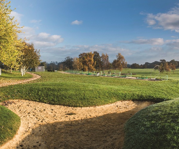 The 18 holes of the golf course meander through a rural idyll of the English countryside with thatched cottages in the background. Flotillas of ducks swim, yellow irises flourish and bulrushes sway in the breezes drifting across the parkland, on the nine lakes. Though, beware of the lake that lurks unexpectedly at the back of the 10th green.