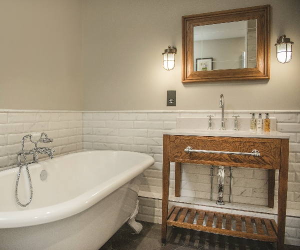 In addition to a separate rainfall shower, there is a large bath for recuperative soaks with decadent organic lifestyle toiletries from Harrogate company H2K.