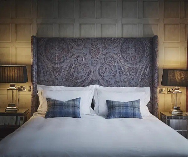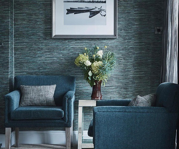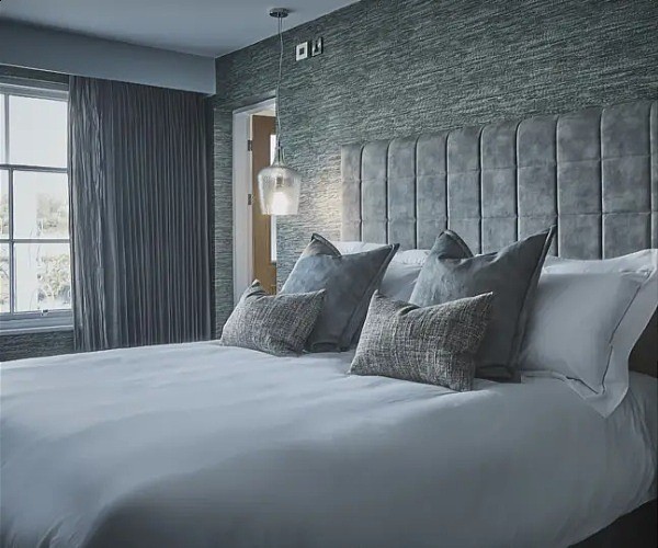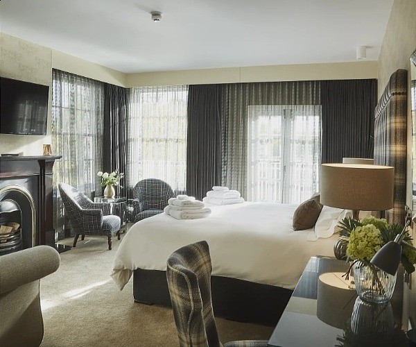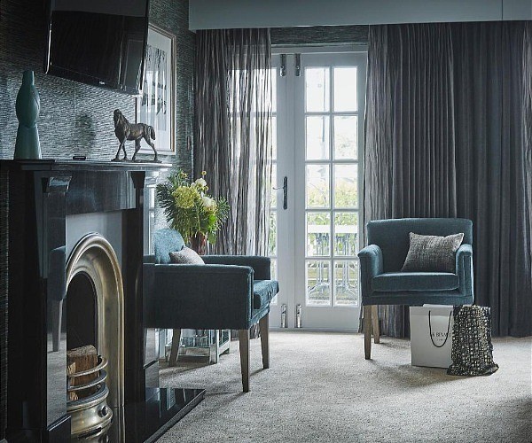 The Grey Groom (Bedroom 7), as its name implies, has grey tones, some comfortable chairs and a fireplace.