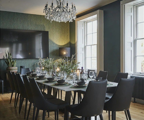 The dining area is flooded with lots of natural light that comes through the grand Georgian windows and offers the perfect setting for family and friends to dine together.