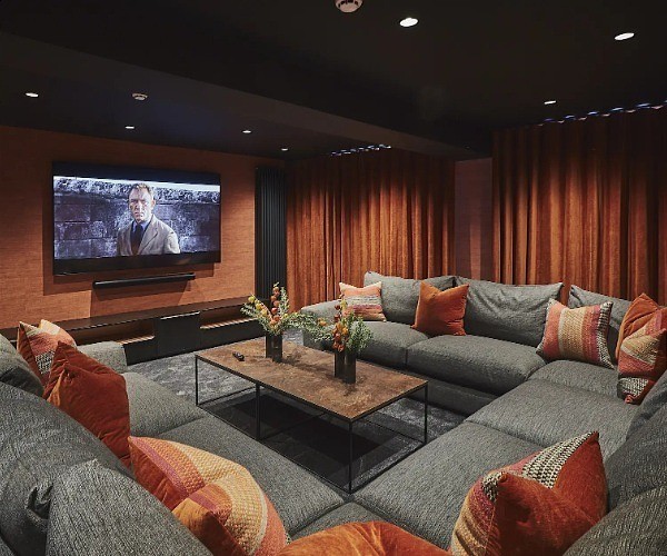 In the basement of the property is a treasure trove of extras that includes a home cinema with surround sound and the neon-lit words ‘Movie Time’ on one wall.