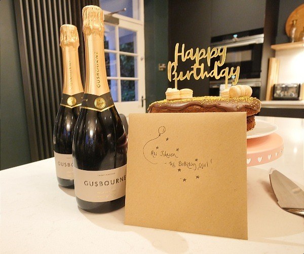 We were celebrating a family birthday and Caroline had very kindly baked a chocolate cake to mark the occasion; with it were two bottles of English fizz (Gusbourne Brut Reserve) and a birthday card.