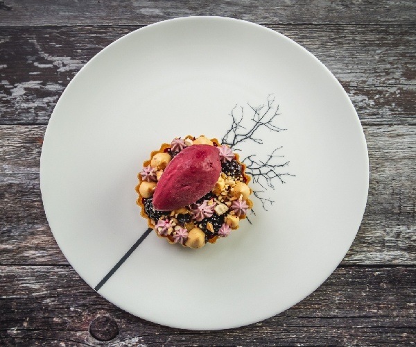 Sadly, the legendary damson soufflé was taking a holiday from the dessert menu when we visited but an inventive apricot and basil mille-feuille with chocolate sauce made a stunning debut.