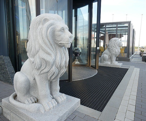 Two large stone lions stand on guard at either side of Hotel Keflavik’s main entrance. Parking close to the hotel entrance was free, with plenty of spaces available when we arrived.