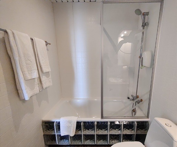The room’s bathroom was compact but with everything needed for a short stay: WC, basin, shower and bath, hair dryer, bathmat, flannels and towels.