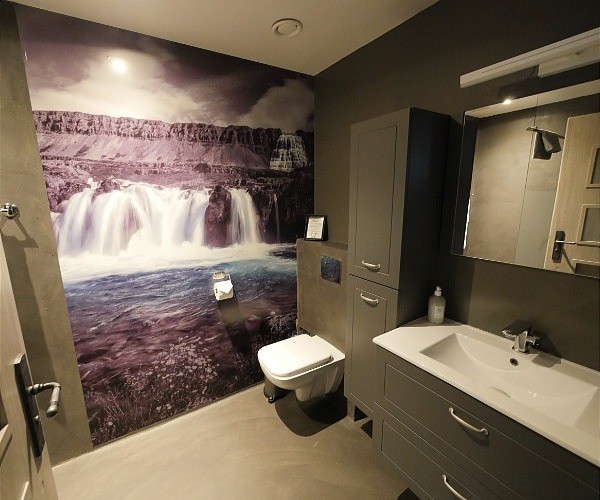 Our sons’ bathroom was similar, depicting another of Iceland’s stunning waterfalls.
